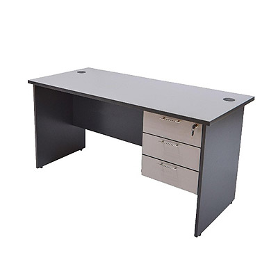 KREY Straight Main Table C/W Fixed Pedestal (Plastic Handle) with L/G Grommet
